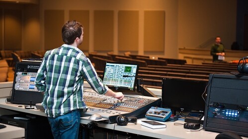 For those with technical skills who want to be a part of the weekend worship experience, the tech team provides an outlet to serve. We have audio techs, video techs and lyric/lighting techs that help make services run smoothly.
